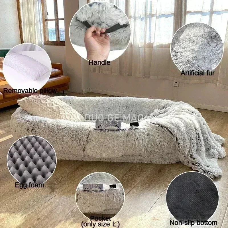 - The 3PCS package includes 1 x human dog bed, 1 x soft blanket, and 1 x plump pillow, offering everything you need for a cozy nap.