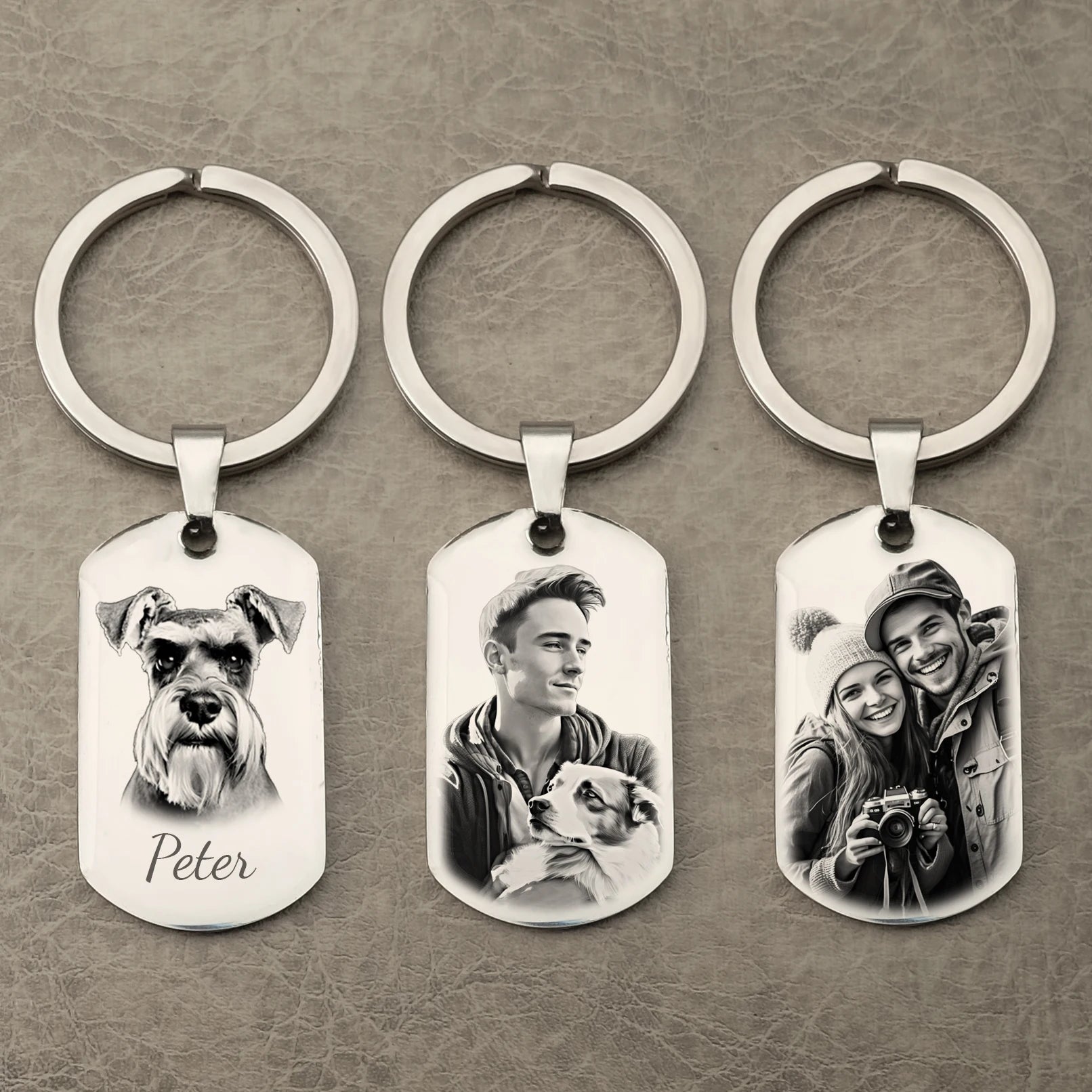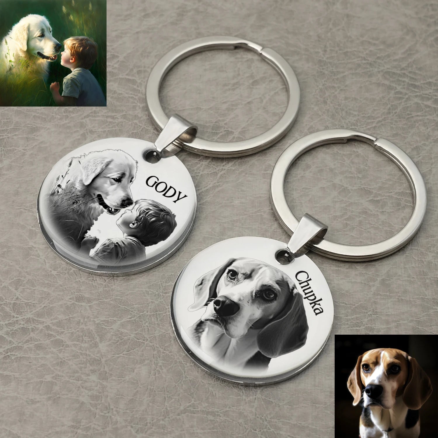 Our Personalized Dog Keychain is the perfect way to keep your beloved pet close to your heart. Crafted with high-quality stainless steel, this keychain is built to last, ensuring that your pet's memory remains with you for years to come. The ability to personalize it with your pet's photo adds a unique touch, making it a truly meaningful gift. Each time you use our keychain, you'll be reminded of your furry friend and the love you shared. With its practical design, you can easily carry it with you wherever you go, showing off your pet's photo and keeping their memory alive.